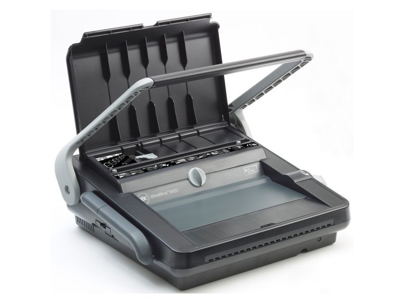 Ideal for frequent office use, the sturdy and practical WireBind W20 is designed to make manual binding easier. With document separating and auto centring as standard features, the WireBind W20 can punch up to 20 80gsm sheets at once and up to 125 sheets using a 14mm wire. It can bind both A4 and A5 documents.