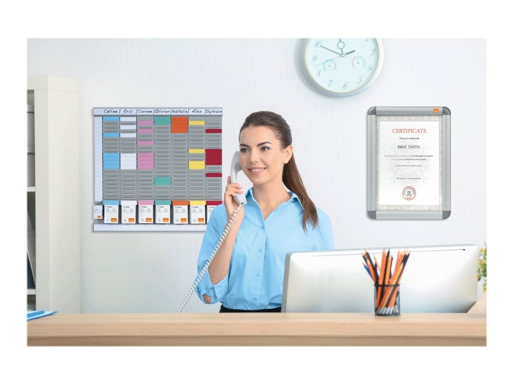 To hold your T-Card system securely together, select a pair of Nobo T-Card Link Bars. Supplied with blank title strips, these strong, aluminium support rails simply clip over the top and bottom of your T-card panels to create a rigid planning system for easy wall mounting.