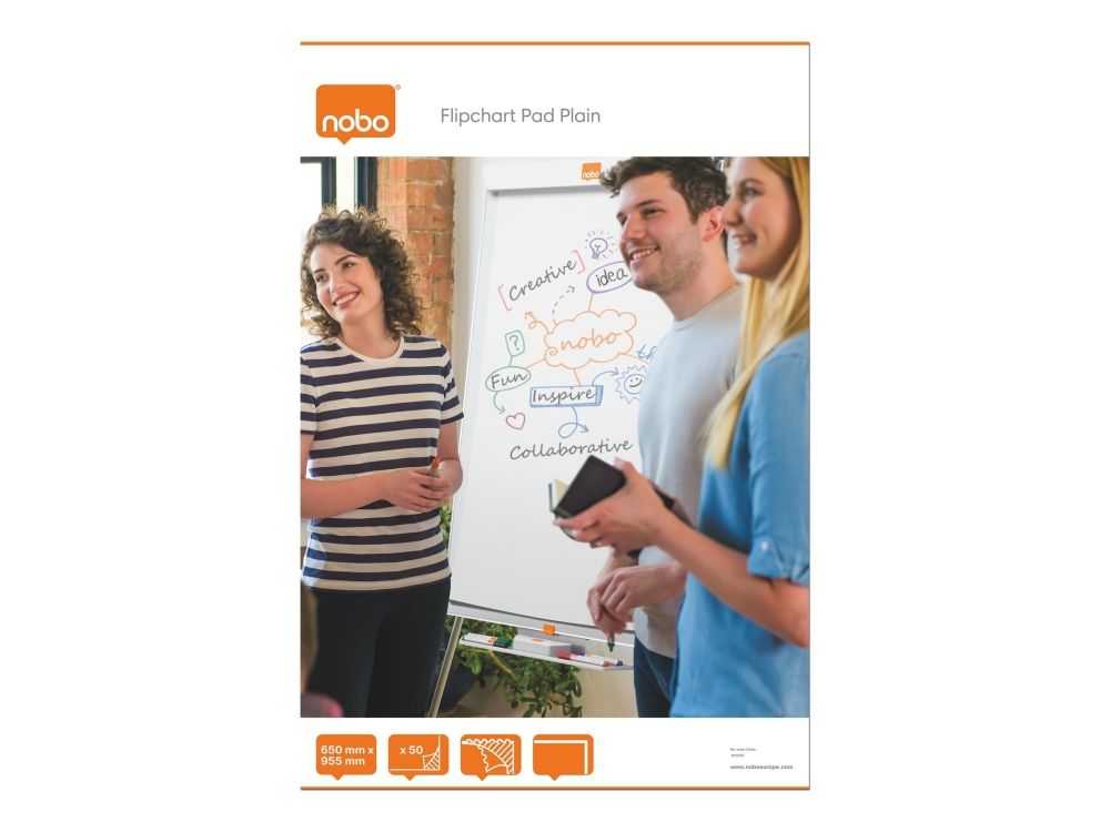 Flipoverblokke er ideelle til at opsamle og fastholde informationer og ideer. Blankt papir, 60 g TMP papir, 50 ark. Størrelse 650x955mm - Let at flippe papiret rundt og perforeret så nemt at tage papiret af - 650x955mm størrelse papirark - Blankt papir - 50 ark. Hæfteklammer i toppen holder de mikroperforerede papirark på plads, der er ikke brugt lim. - 60 g TMP stærkt papir - Nem at bruge med Nobo flipovere