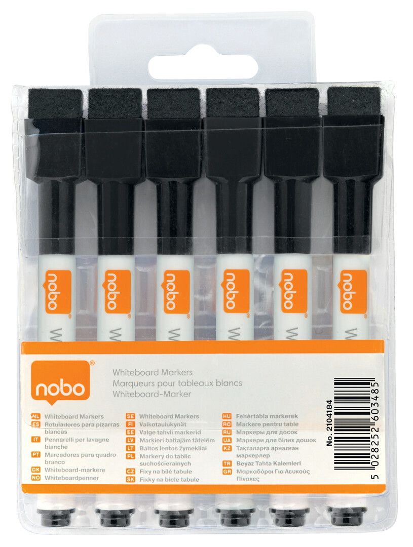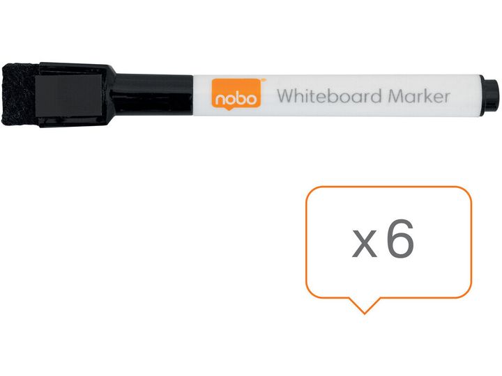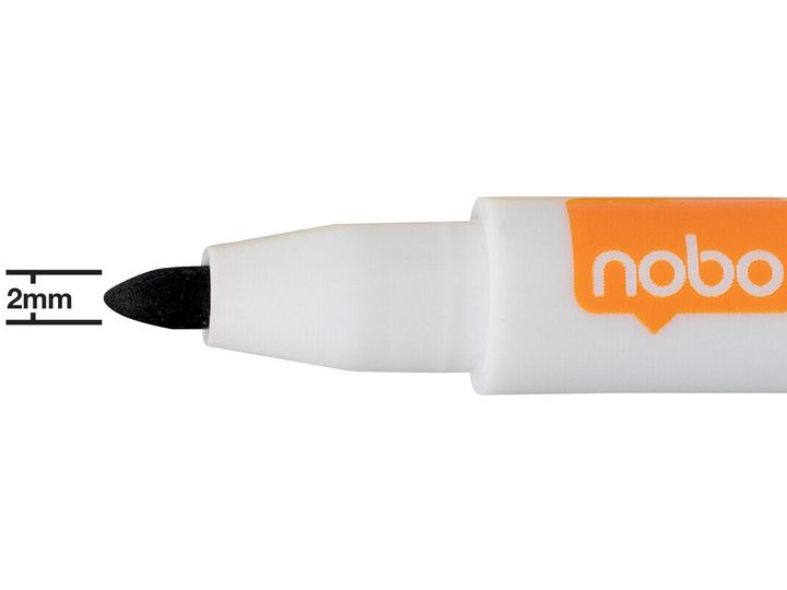 Nobo Dry-Erase markere har hætte og er med en fin sort spids. De er både lugtsvage og indeholder ikke giftigt blæk og er dermed perfekte til brug i ethvert miljø – navnlig i hjemmet eller på skoler. De har desuden en magnetisk viskerhætte, hvilket gør dem nemme at fastgøre på dit magnetiske nobo-whiteboard. Du kan dermed viske tavlen ren, så snart du er færdig med at bruge den, uden at købe separat tavlevisker.