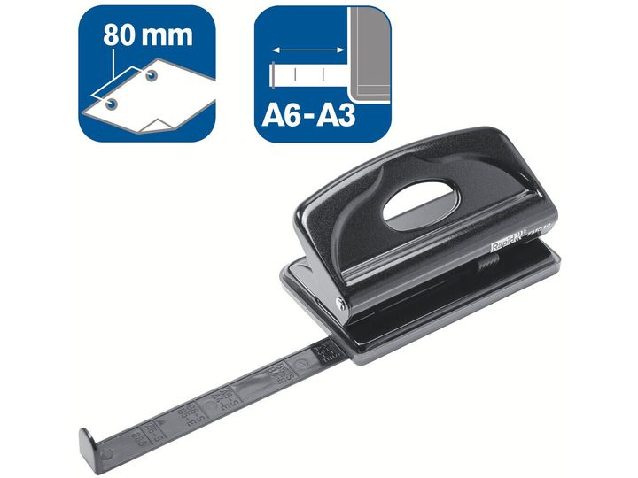 Stærkt metal hulapparat med greb og base i forstærket ABS plastik. Til hjemmet eller skolebrug.