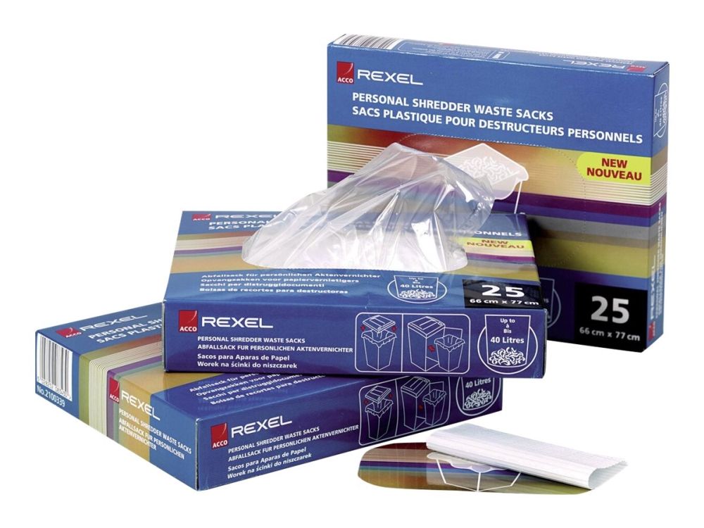 The AS range of waste sacks are specifically designed to fit Rexel machines. They are manufactured from top grade polypropylene and are supplied in an easy dispenser box.