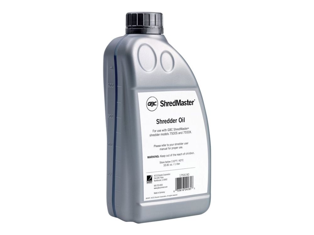 Ready to use 1 liter bottle of shredder oil that is recommended for use with the Rexel range of wide entry shredders that feature an auto oiling system. Simply install the bottle, then replace when empty.