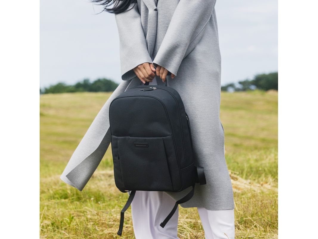 An elegant backpack designed with adjustable padded shoulder straps, two-way zip closure and 2 zipped outer pockets. Inside this refined case features a padded section for a 15-inch laptop and considered organization for all your essentials. It's made in durable polyester with full-grain leather detailing enriching the luxurious appearance of this expertly handcrafted backpack.