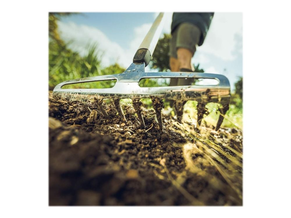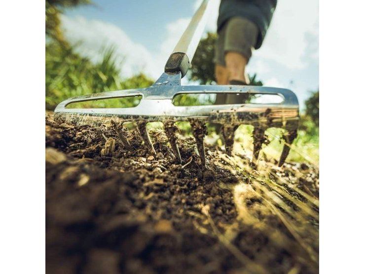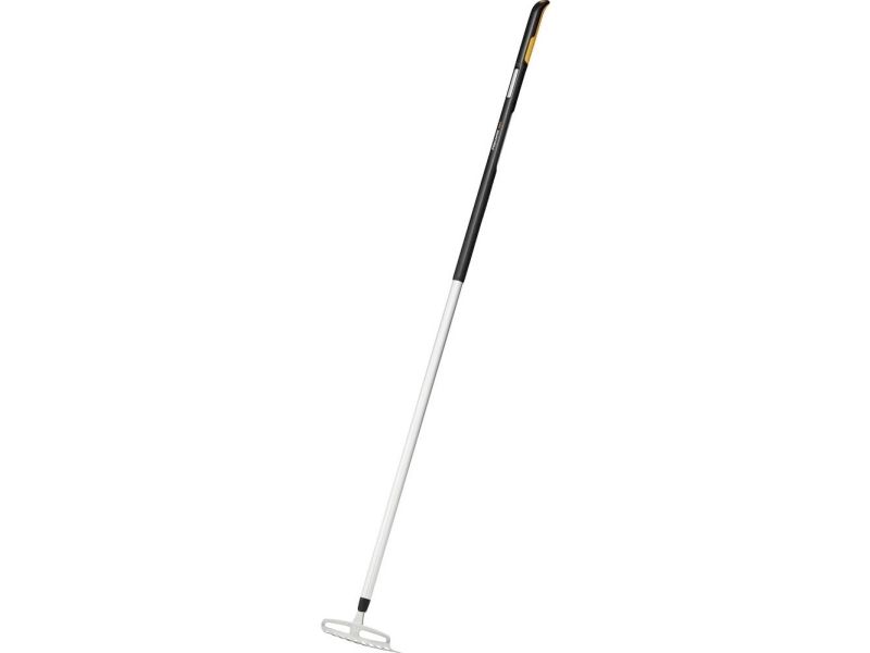 Xact rose rake is ideal for cleaning and spreading soil in small spaces around, between and under plants. Durable stainless steel head with 10prongs makes raking in narrow areas more effectual. Hardened aluminum and unique shaft profile reduce weight without sacrificing strength making every stroke effortless. Ergonomic SoftGrip handle design allows multiple hand positions and exceptional handle and shape gives good support during use.