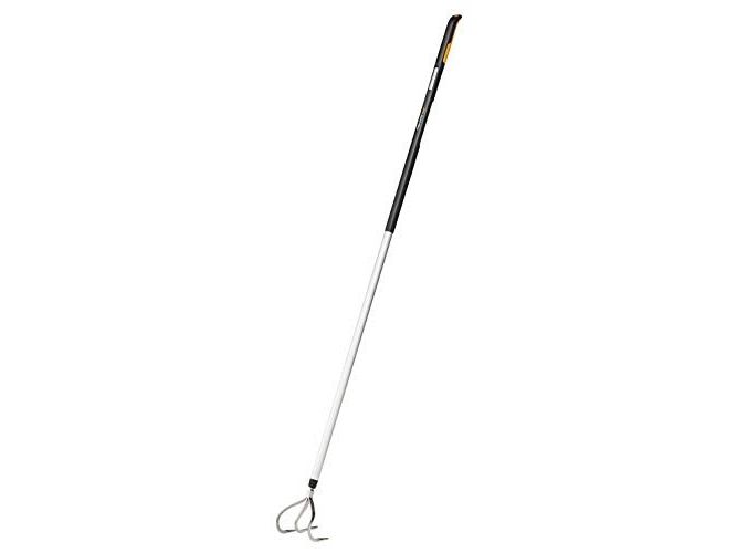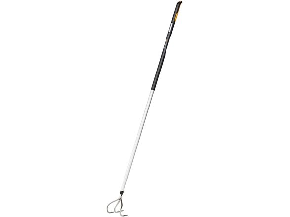 Wide Xact Cultivator with three prongs for loosening compacted soil efficiently. The Rigid and sturdy stainless steel prongs penetrate soil precisely when tilling and cultivating the soil. Hardened aluminium and unique shaft profile reduce weight without sacrificing strength making every stroke effortless. Ergonomic SoftGrip™ handle design allows multiple hand positions and exceptional handle and shape gives good support during use.
