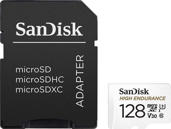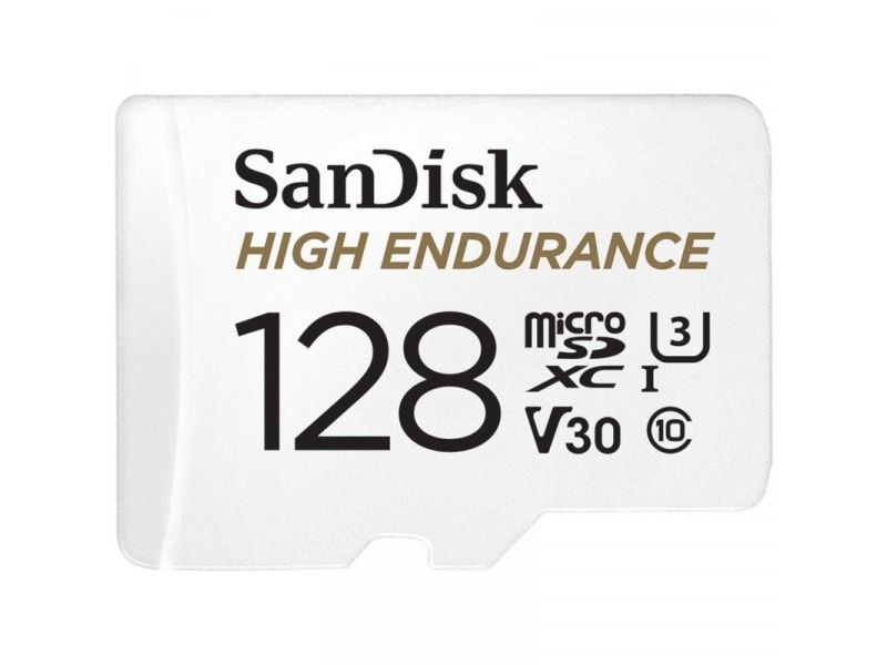 SanDisk High Endurance - Flashminnekort (microSDXC til SD-adapter inkludert) - 128 GB - Video Class V30 / UHS-I U3 / Class10 - microSDXC UHS-I
