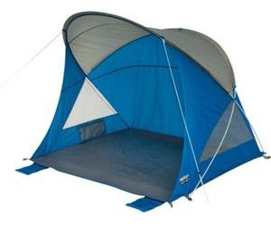 Classic beach shelter with UV factor 40. The prolonged half-moon canopy provide a great shade area and the curved side wings protect from wind and sand. Two mesh panels provide a good breeze and keeps the heat out.