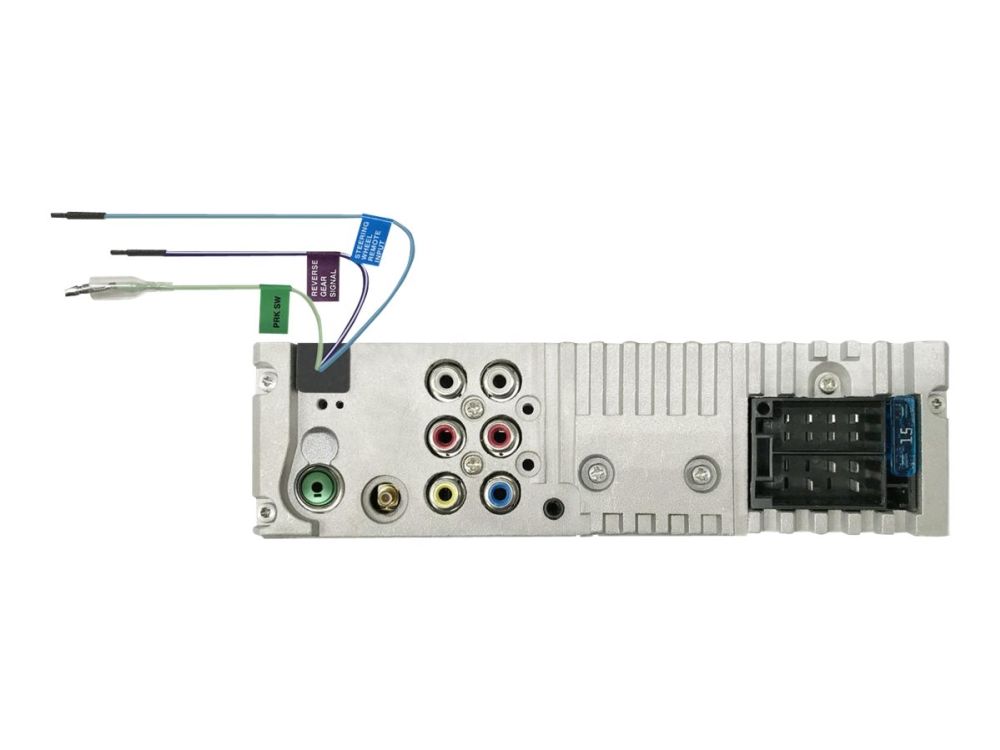 USB (4 pin USB Type A) - foran Lydinngang (minijack stereo 3,5 mm) - foran Kamerakontakt (RCA) - bak 2 x lydutgang (RCA phono x 2) - bak Basshøyttaler-utgang (RCA) - bak