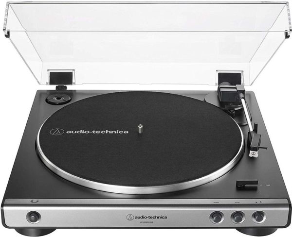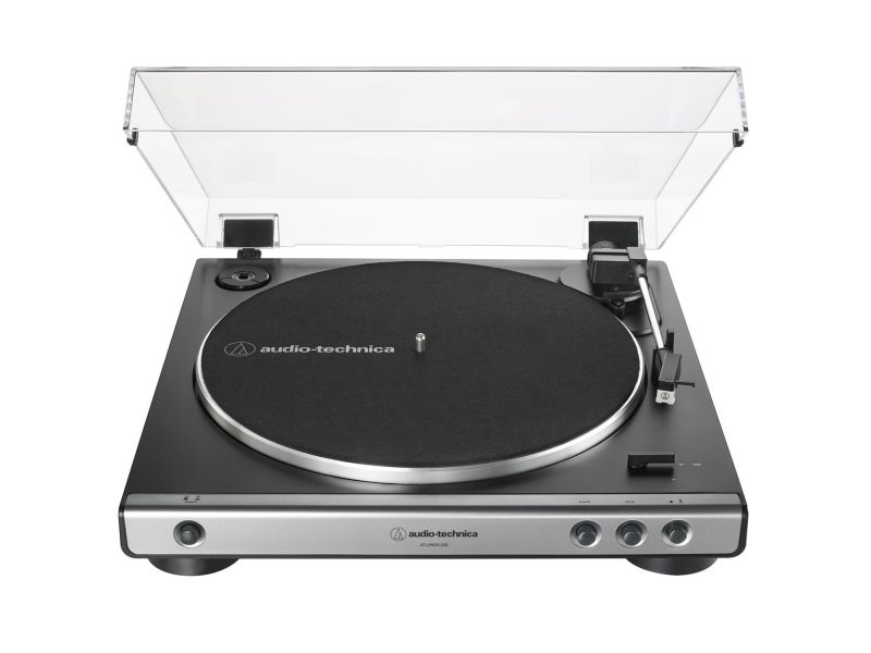 Audio-Technica AT-LP60XUSB. Type: Belt-drive audio turntable, Operation: Fully automatic, Product colour: Grey, Metallic. Power supply type: AC, Power consumption (typical): 3 W, AC adapter input voltage: 115 / 230 V. Width: 359.5 mm, Depth: 373.3 mm, Height: 97.5 mm. Package weight: 3.6 kg, Package width: 472 mm, Package depth: 424 mm. Cables included: Audio (3.5mm), RCA, USB