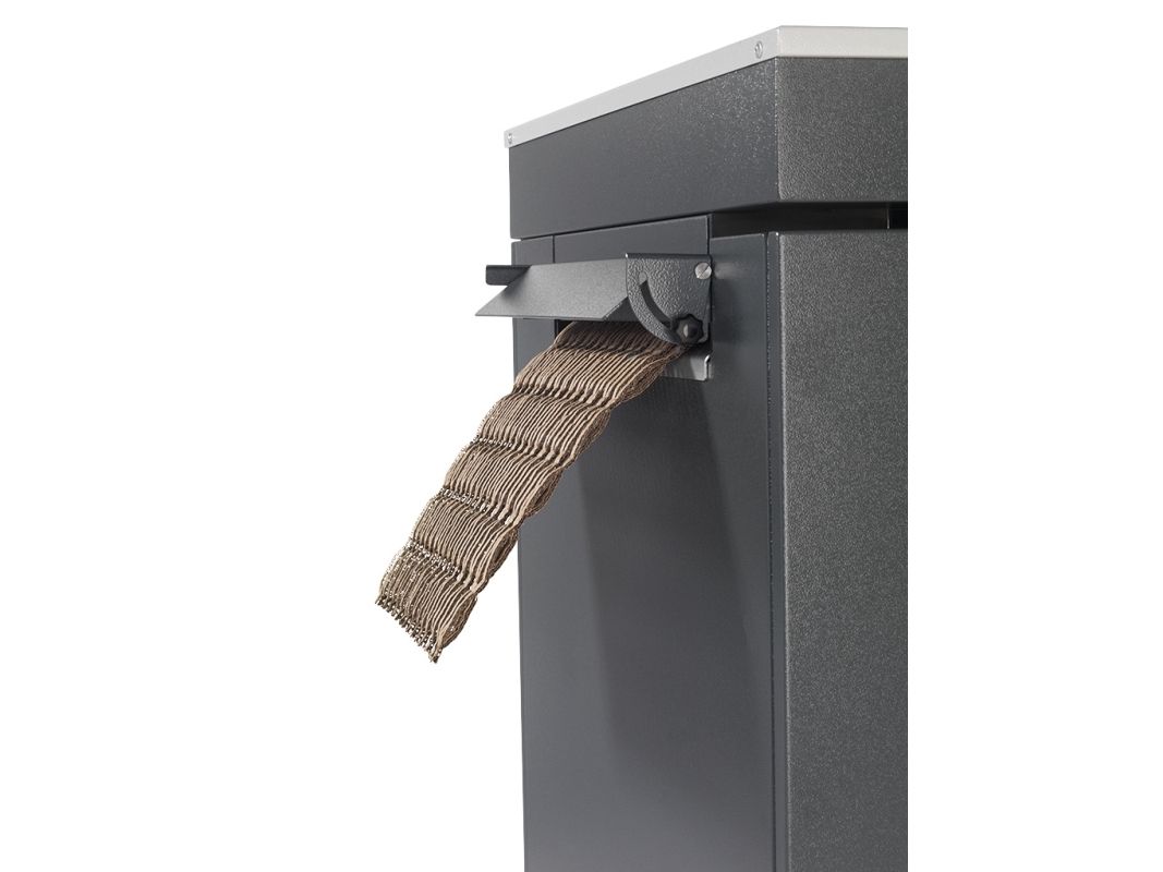 This robust and performance-optimized packaging machine is used to process a number of layers of cardboard into a padding mat or padded filling material. The professional device is mobile on steering rollers and can be used with total flexibility.