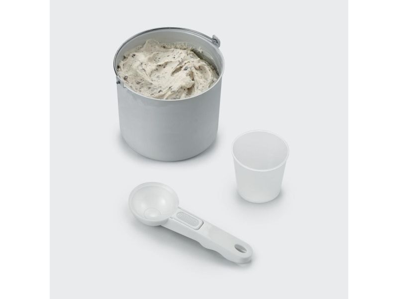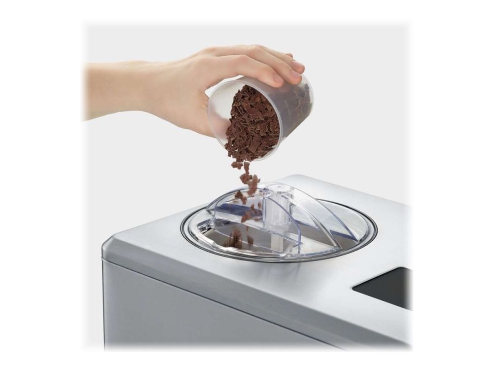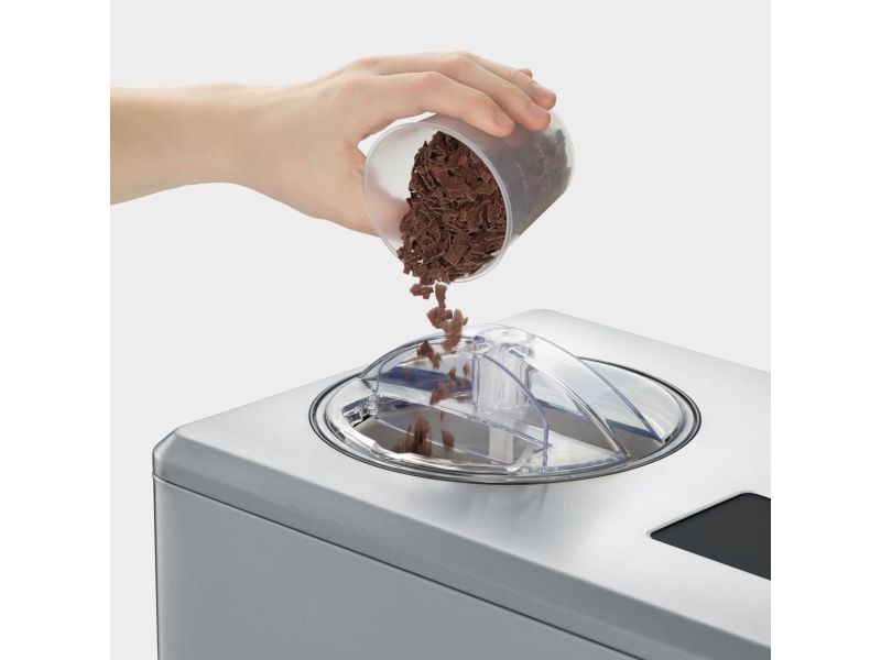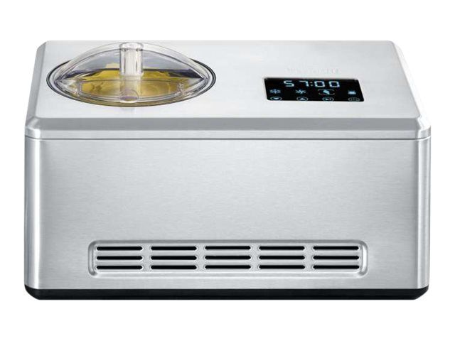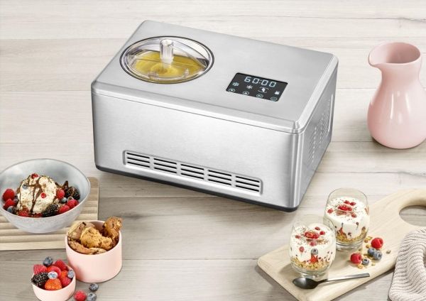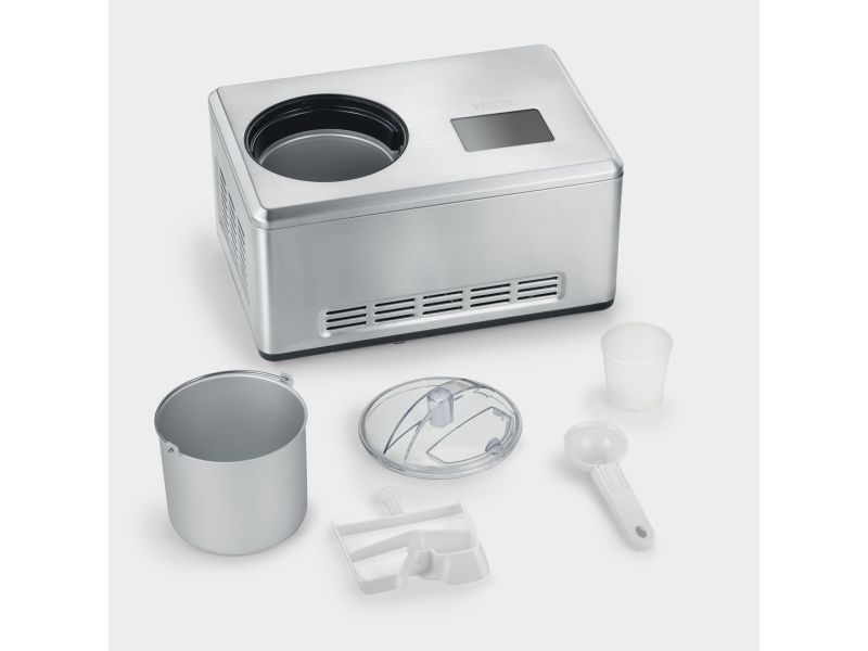 The practical 2-in-1 ice cream maker is ideal for preparing ice cream, frozen yoghurt and sorbet - in less than 30 minutes. Visually, the kitchen gadget comes in a high-quality stainless steel casing, while it is operated via an LED touchscreen. The integrated digital timer can be adjusted to the minute, while you can read the temperature via a display. Thanks to an innovative 2-in-1 "warm & cold" function, you can also easily make yoghurt, which is automatically cooled down after preparation. The large ice cream container with a capacity of 2 liters ensures that the ice cream maker is also suitable for families. Discover delicious recipes for ice cream, yoghurt and more in the popular recipe book.