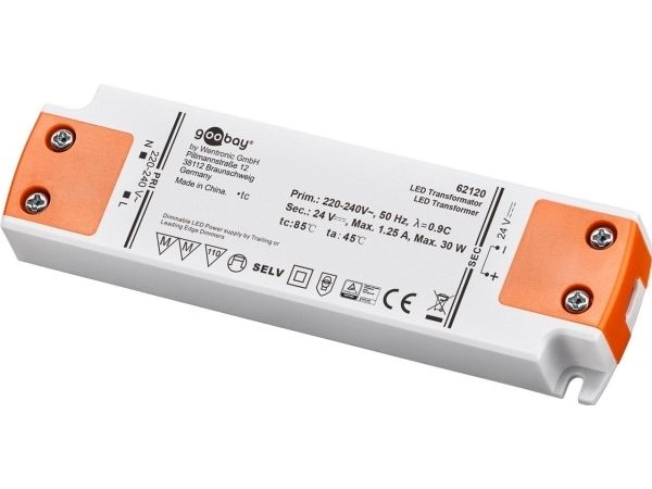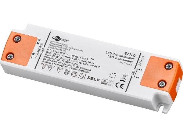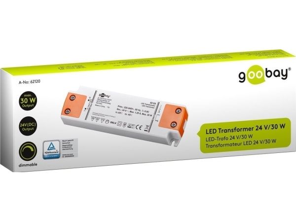 Goobay 62120, Elektronisk lystransformator, Oransje, Hvit, IP20, -20 - 45 °C, CE, RoHS Directive 2011/65/EU [OJEU L174/88-110, 01.07.2011, 30 W