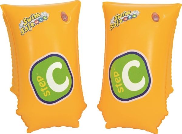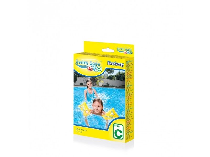 Indhold: 1 par armbånd Giv dit barn et boost af glad selvtillid i vandet med Swim Safe ABC? WonderSplash? Inflatable Armband Floaties! Trin C-armbånd giver børn i alderen 5-12 et boost af selvtillid, når de flyder og øver deres svømmeteknikker i disse fleksible, men tætsiddende start-flydede. Armbåndene har et dobbelt luftkammer for øget sikkerhed og opdrift, så dit barn kan føle sig trygge, mens de bliver mere komfortable i vandet. Bestway® Swim Safe ABC trin-for-trin-programmet begynder med trin A-både, der er til babyer og småbørn, der har brug for maksimal støtte. Trin B-svømmeveste er til småbørn, der begynder at få selvtillid, men som endnu ikke kan svømme alene, og trin C-armbånd er til børn, der begynder at lære svømningens grundlæggende færdigheder. Med deres iøjnefaldende gule farve og lette opblæsning, aflusning og opbevaring er Swim Safe WonderSplash-armbåndene nemme at pakke væk til dit barns næste legeaften!