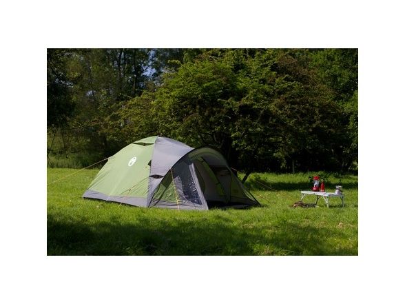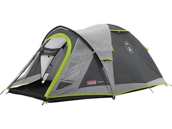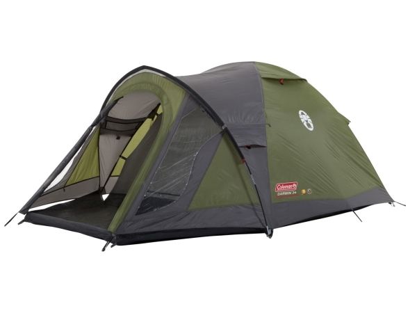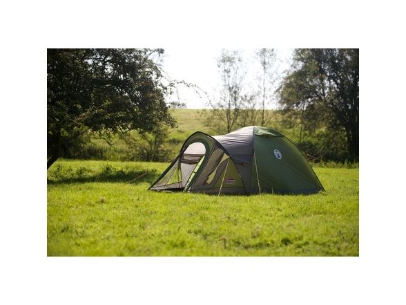 Quick-pitch extended dome structure with ring and pin pole attachment.Strong, durable PE groundsheet. Large front porch with riser groundsheet.Large PVC windows with curtains in porch.Coleman Darwin 3+. Number of sleeping places: 3 person(s), Comfort sleeping capacity (max): 3 person(s), Frame type: Hard frame. Type: Dome/Igloo tent, Purpose: Backpacking, Product colour: Grey, Khaki. Ground cloth material: Polyester, Frame material: Fiberglass, Interior material: Polyester. Weight: 4.9 kg. Package width: 500 mm, Package depth: 190 mm, Package height: 190 mm