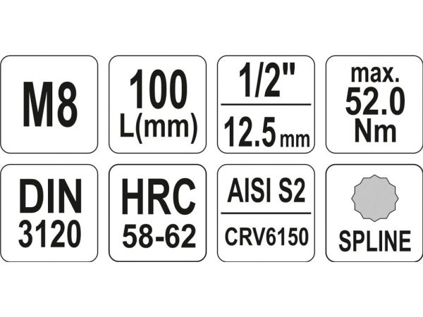 Yato Spline skaftsokkel 1/2" M8 x 100 mm lang (YT-04352)