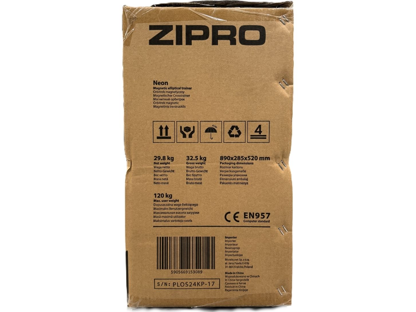 Neon Zipro ellipsemaskin har en svinghjul på 7 kilo og et magnetisk motstandssystem, som er kjent for sitt stille og smidige arbeid samt feilfri ytelse. Enheten opererer stabilt på hvert av de 8 belastningsnivåene. Motstanden justeres ved å bruke en bryter plassert på styrestangen.