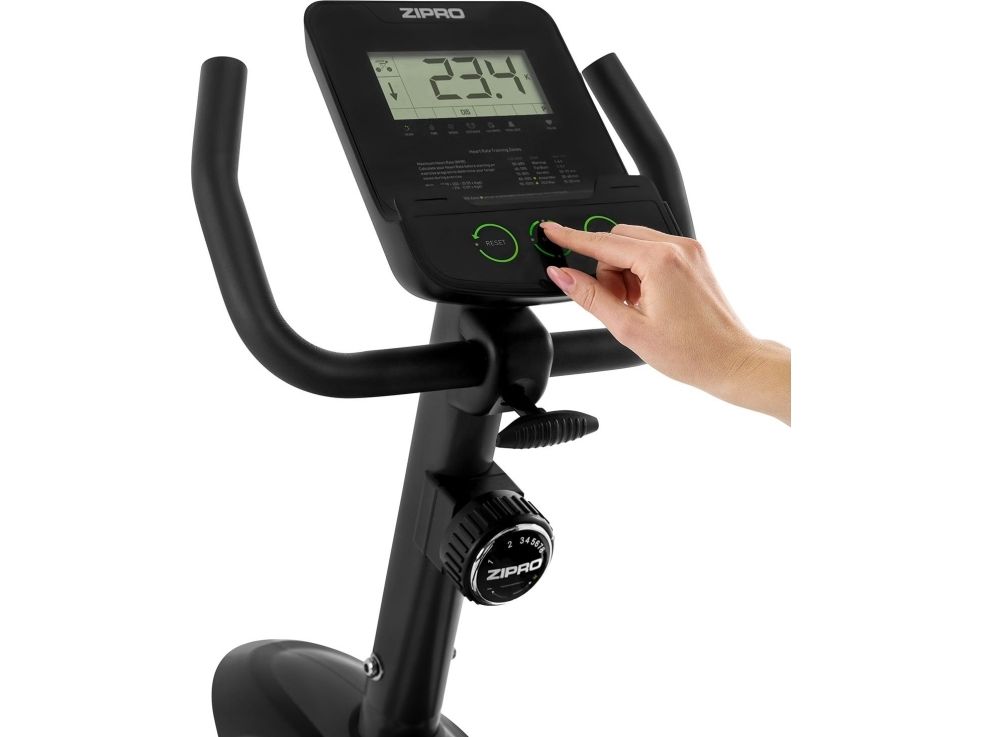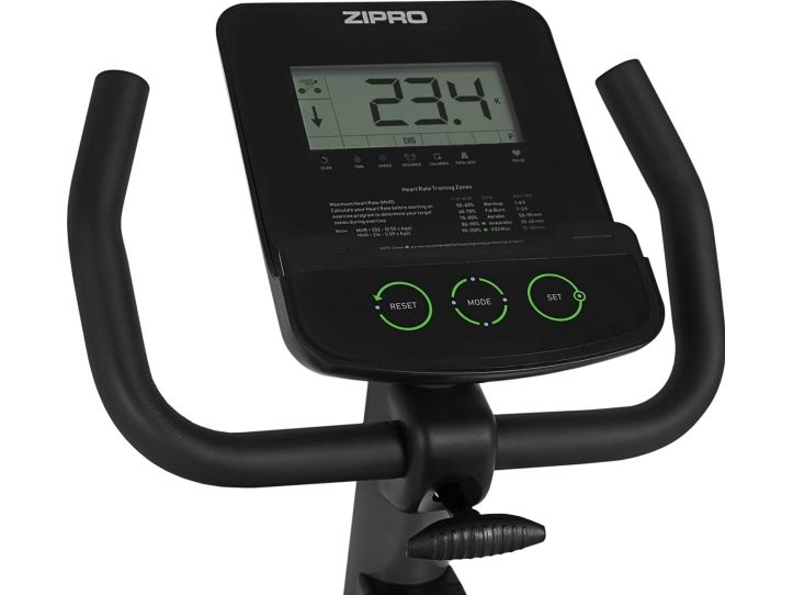 Takket være justerbar avstand mellom sete og pedaler kan sykkelen enkelt tilpasses til høyden på personen som trener. Du trenger bare sette deg på det brede setet med profilert ryggstøtte, plassere føttene på pedalene utstyrt med stabiliserende stropper, og begynne treningen. Det som er svært viktig for kvaliteten på treningen på en stasjonær sykkel, er jevn drift - på Zipro Easy sikres dette av det magnetiske motstanden. Reguleres med en bryter på kolonnen med datamaskin. Den 8-trinns rekkevidden gjør det mulig å ha treningsøkter med varierende vanskelighetsgrad og med mål om å oppnå bestemte resultater.