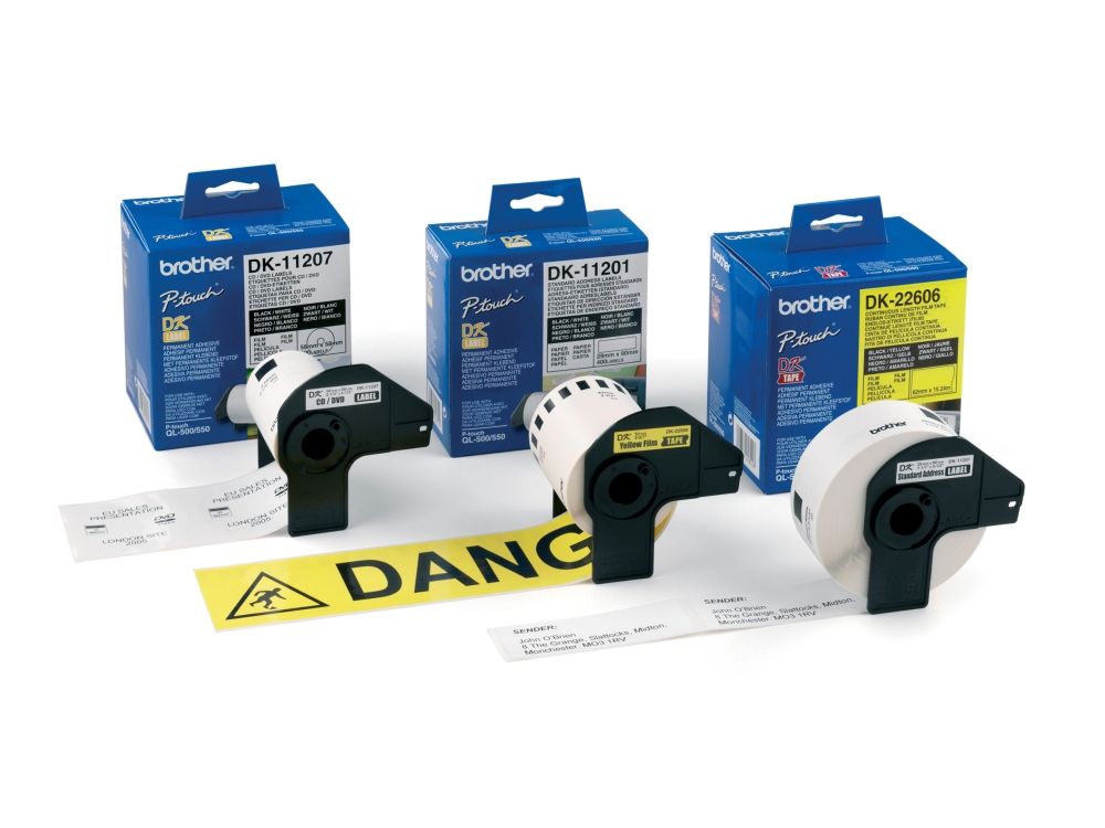Brother DK-tape er utviklet for å fungere perfekt med Brother QL-etikettskrivere slik at du får et profesjonelt resultat.