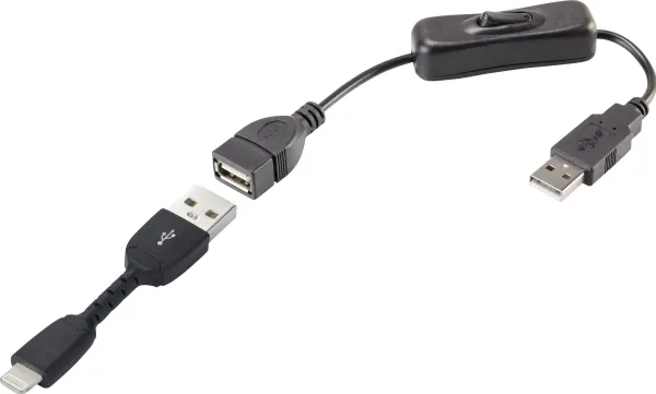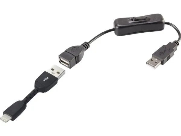 Renkforce USB-tilslutningskabel A/Lightning med tænd-/sluk-0,30 m