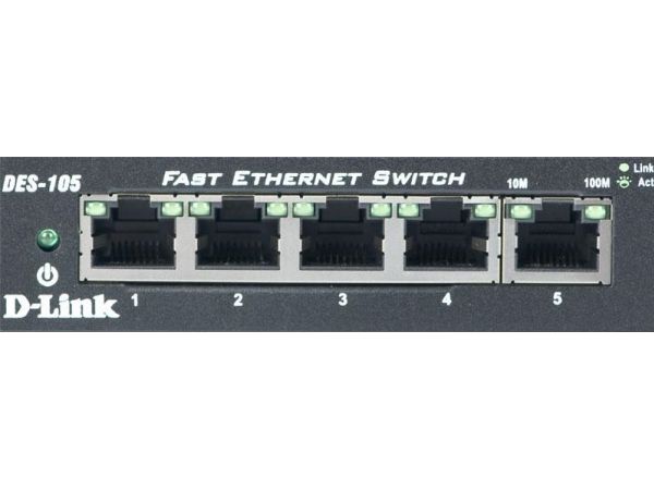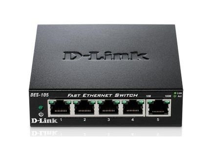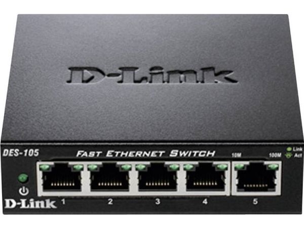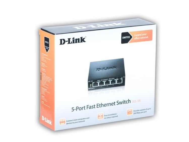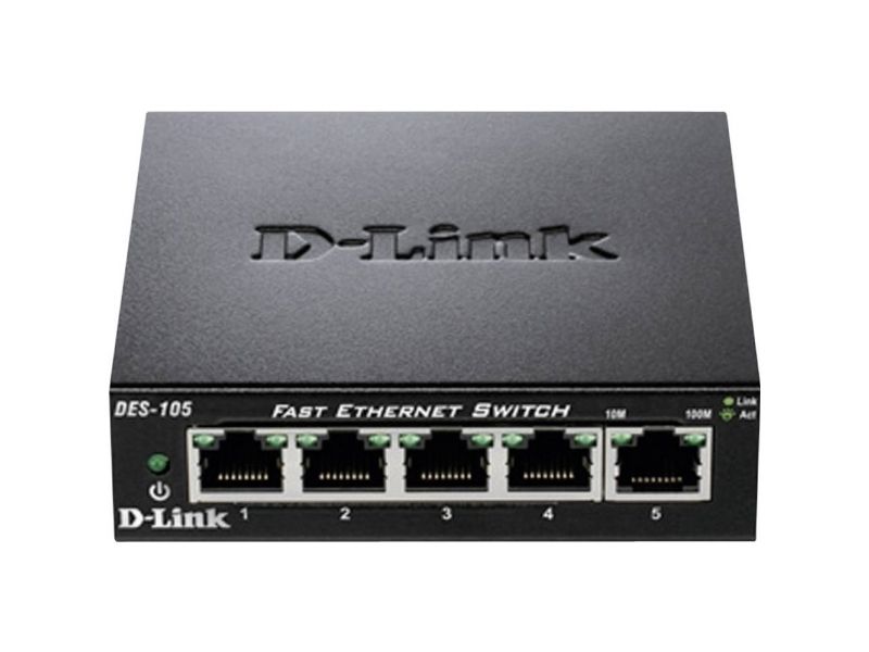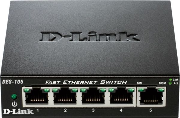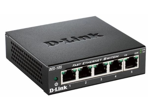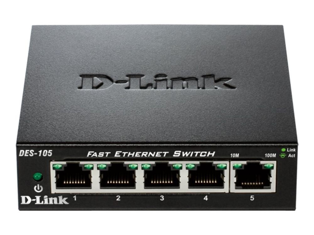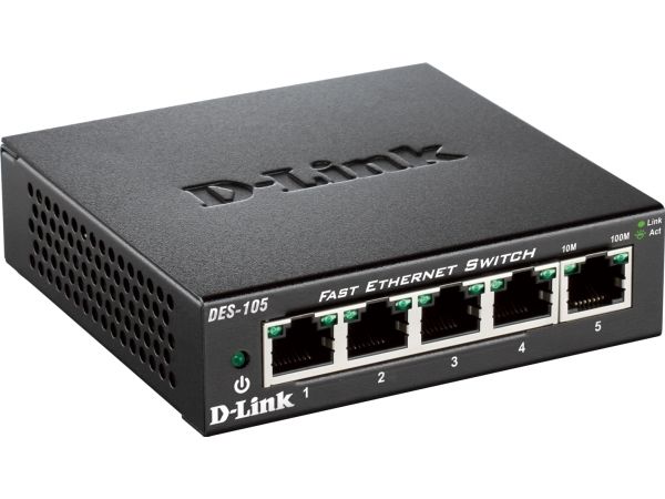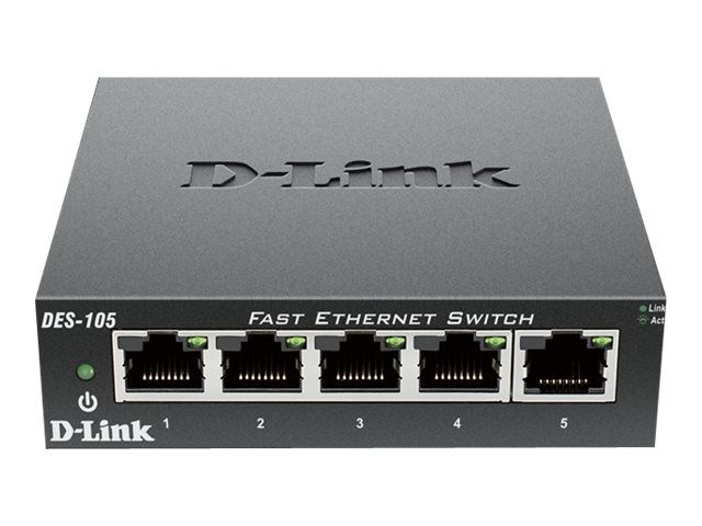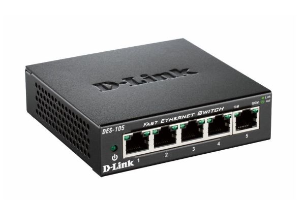 D-Link’s DES-105 Fast Ethernet switch provides a cost-effective way for SOHO and SMB to create a small network and connect computers, wireless Access Points, IP cameras, network printers and other Ethernet devices quickly and easily without complicated configurations. This switch comes with 5 Fast Ethernet ports with an auto-sensing function to detect the maximum speed of the connected devices, allowing you to run your network with the best possible performance. Its fanless design makes this switch completely silent, ideal for offices, libraries or meeting rooms.