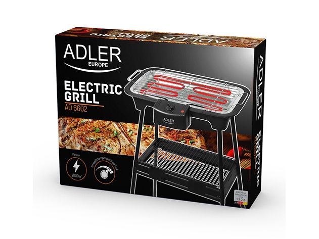 Adler AD 6602, 2000 W, Grill, Elektrisk, Tabletop, Grid, Sort