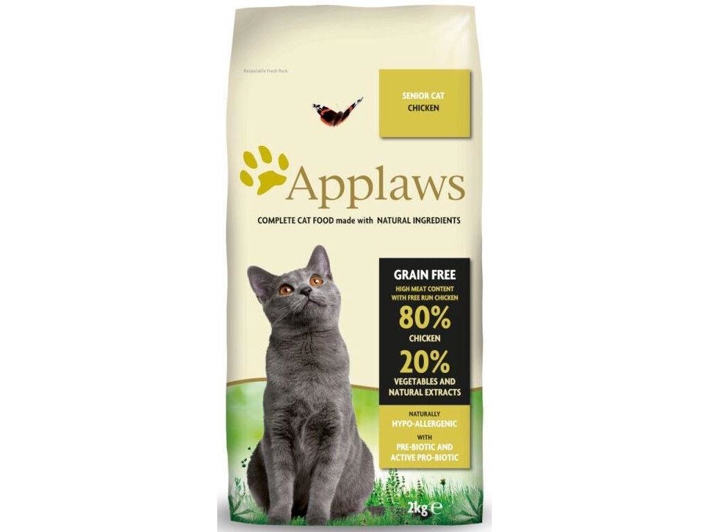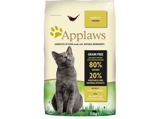 Applaws is a complete dry cat food specially formulated to help senior cats maintain a healthy lifestyle. Grain Free Applaws is made with 80% chicken with coconut oil which is a natural source of MCT fats.