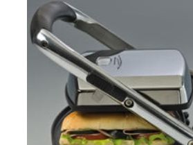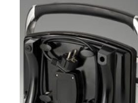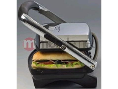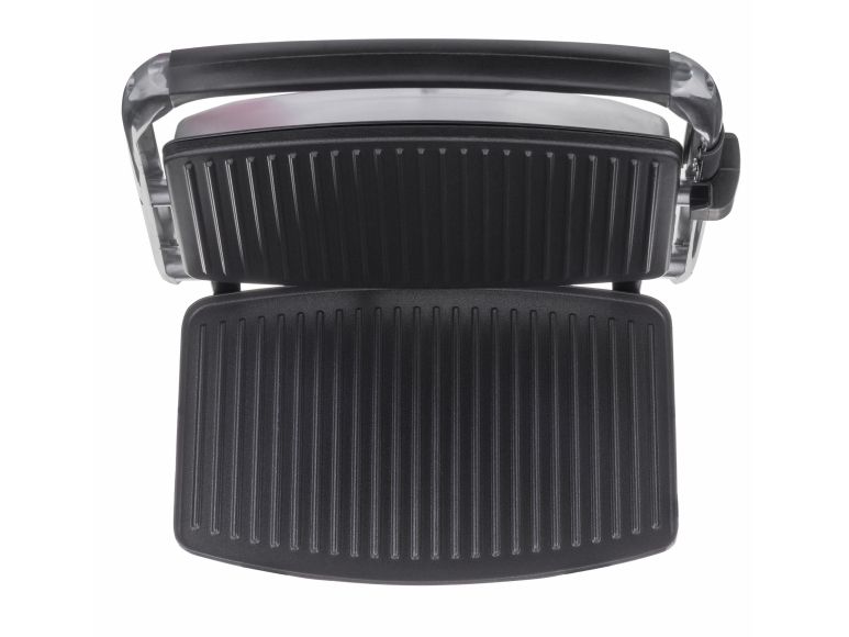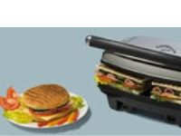 Non-stick electric grill with ridged plates for preparing excellent sandwiches, panini, hot dogs, hamburgers or brochettes. A compact and elegant kitchen aid.