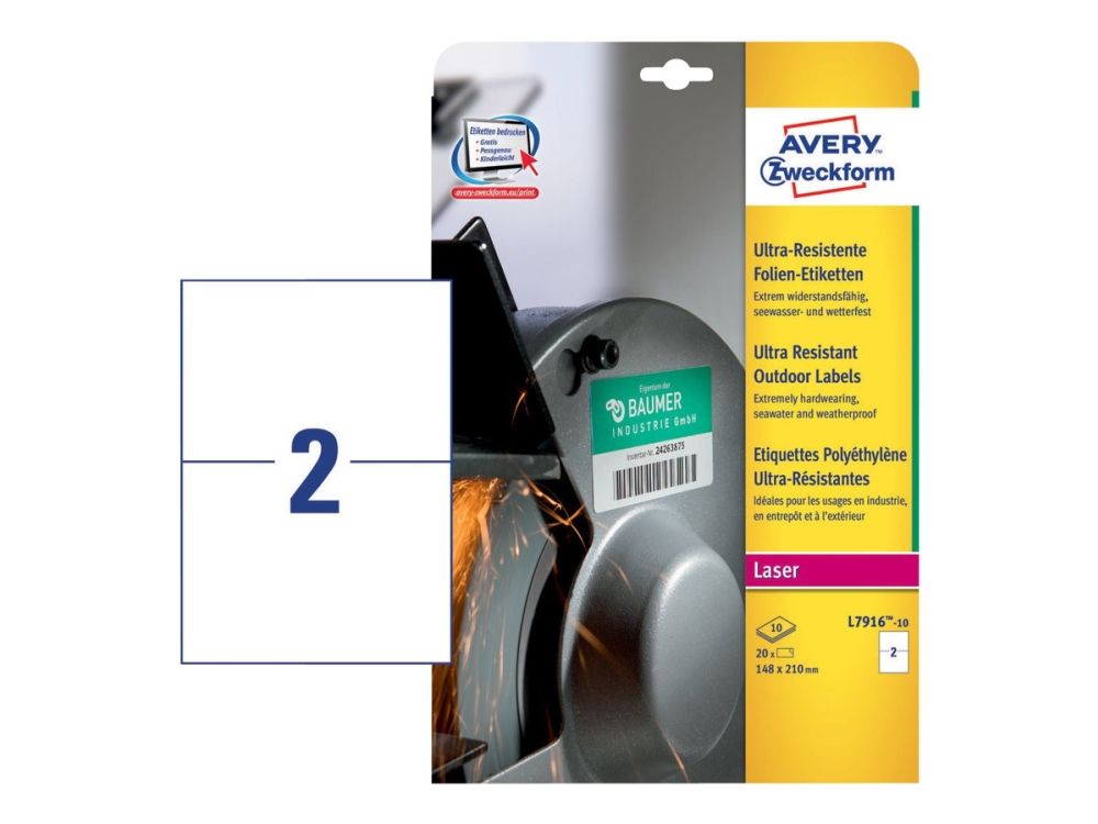 Avery L7916-10 - Polyetylen (PE) - permanent lim - hvit - A5 (148 x 210 mm) 20 etikett(er) (10 rulle(r) x 2) filmetiketter