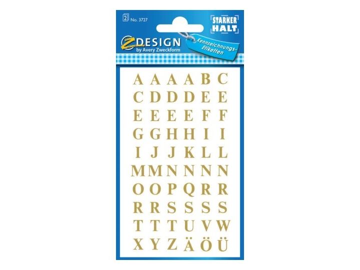 Z-Design 3727 Etiketter med bogstaver, Lille format, 120 Etiketter, guld Brug Avery 3727 selvklæbende bogstaver til organisering, identifikation og mærkning - både inde og ude. Køb her.