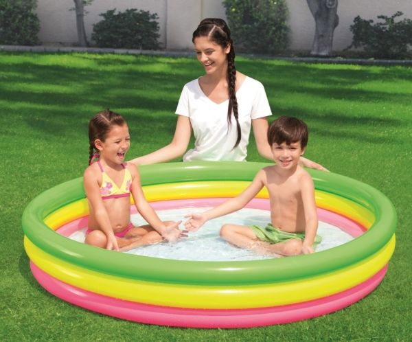 SOMMER POOL * Sikkerhedsventiler * Forstærket for-testet vinyl * Tre ringe med samme størrelse * Blød oppustelig bund  * Lap til reparation medfølger * Designet vandkapacitet: 211 L (56 gal.) * Holdbar 0.19mm vinyl