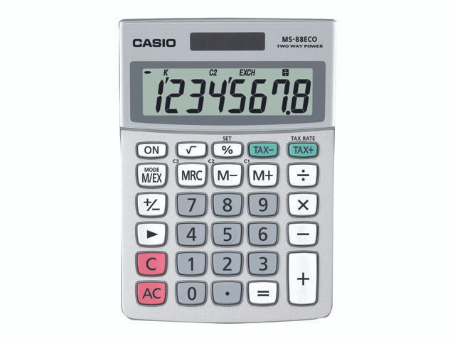 Casio MS-88ECO - Skrivebordskalkulator - 8 sifre - batteri, solpanel