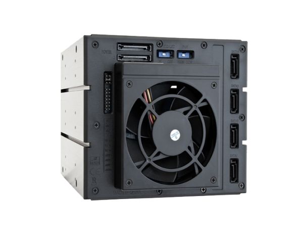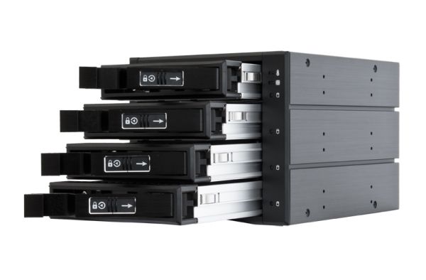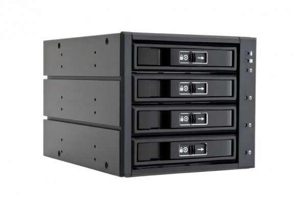 The backplane CBP-3141SAS sets the standard with the patented anti-vibration design. Like no other backplane makes it suitable for diverse applications. The chassis is made of high quality aluminum and requires only three 5.25" and provides space for four 3.5" or 2.5" hard drives or SSDs.