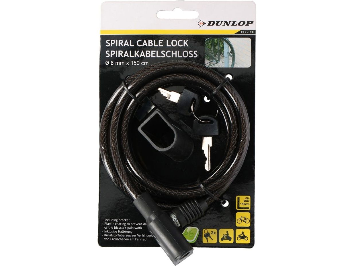Dunlop - tyverisikring sykkellås 150 cm + håndtak (svart)
