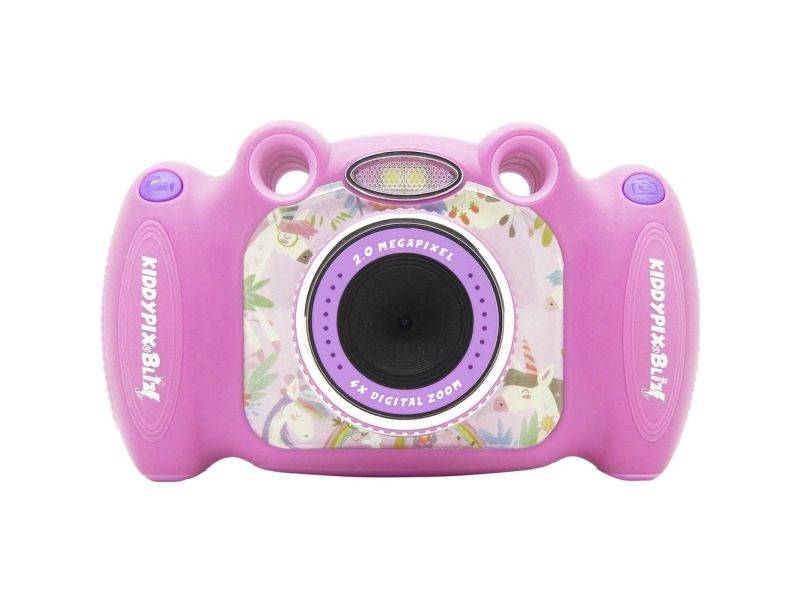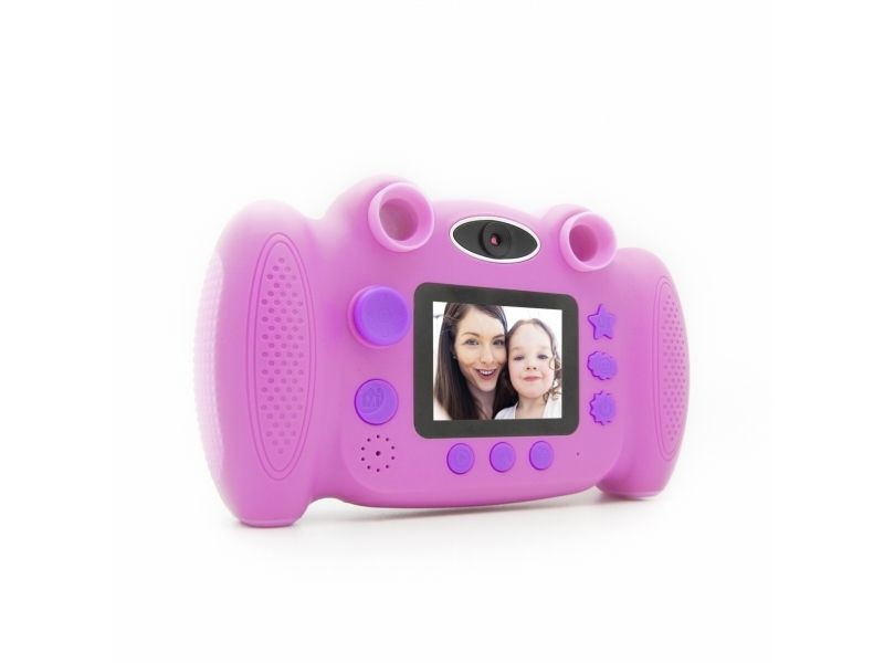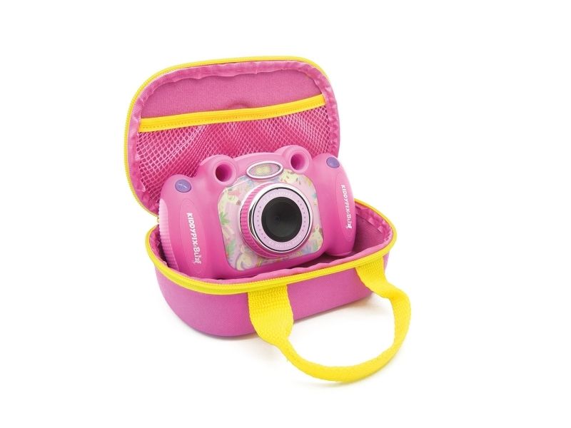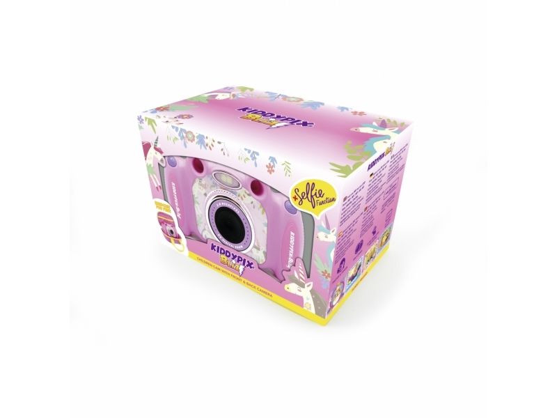 Thanks to the rear mounted lens on the Kiddypix Blizz, you can easily take cool selfies without having to turn the camera around. With the front lens, you can take wonderful photos and videos as usual, but the camera can do much more! For example, children can use the Kiddypix Blizz to play various games, decorate photos with colorful frames, or record sounds and play them back with fun effects. The Kiddypix Blizz is a real all-rounder.