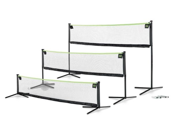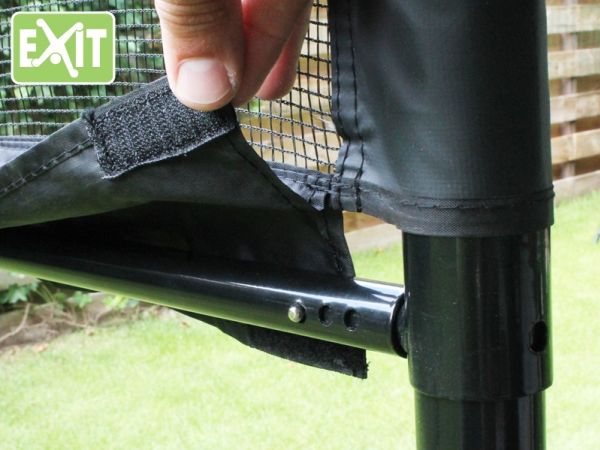 The beautiful design and quiet colors of the Multi-Sport Net would compliment any garden. The robust frame and very strong net guarantee hours of fun! The EXIT Multi-Sport Net has a double net tensioning system to ensure that the net remains tight. The horizontal metal tube connection in the bottom of the net extends from one side to the other. The width of this connection is adjustable, so tension can be dictated. The elastic connection at the top of the net to the posts ensures that the network also on the upper side is pulled tight.