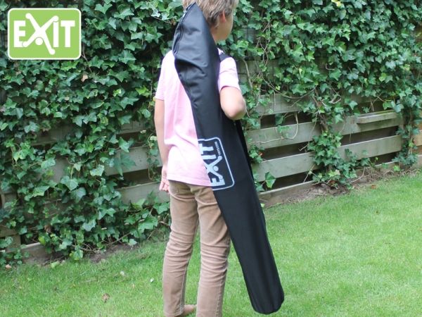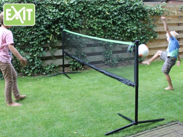 Further, in addition to the stable tripod you can also use the unique anchoring system from Exit, consisting of anchor tubes and ground anchors! Therefore the sportsnet is very stable to place in your garden for lasting play. gone are the days of cheap sets contantly falling down!! Even while playing volleyball or footballtennis. Do you have to mow the lawn? The sportnet is easy to lift out of the ground anchors so that the lawn can be mowed. And afterwards the sportsnet is easy to put back in the same place as the anchors stay in position. But even without anchoring the net is firmly on both legs. So it also can be used indoors in a sports hall or gymnasium, on a driveway (or even in the house when mummy is out). And with the handy carrying case included, the whole net can be taken anywhere!