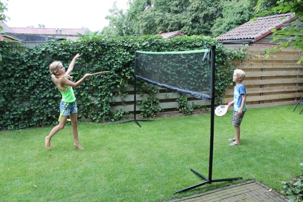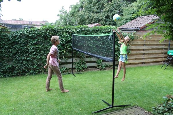 With a width of 300cm, this makes it possible that the net fits in most gardens, yet wide enough to be useable for the purpose it is intended. The green top edge of the network ensures that the network is clearly visible while playing. In an instant you can change the height of the net. Just click the pipes to the correct height and let's play! Height net Low: +/- 62cm Height net Mid: +/- 109cm Height net Top: +/- 155cm.