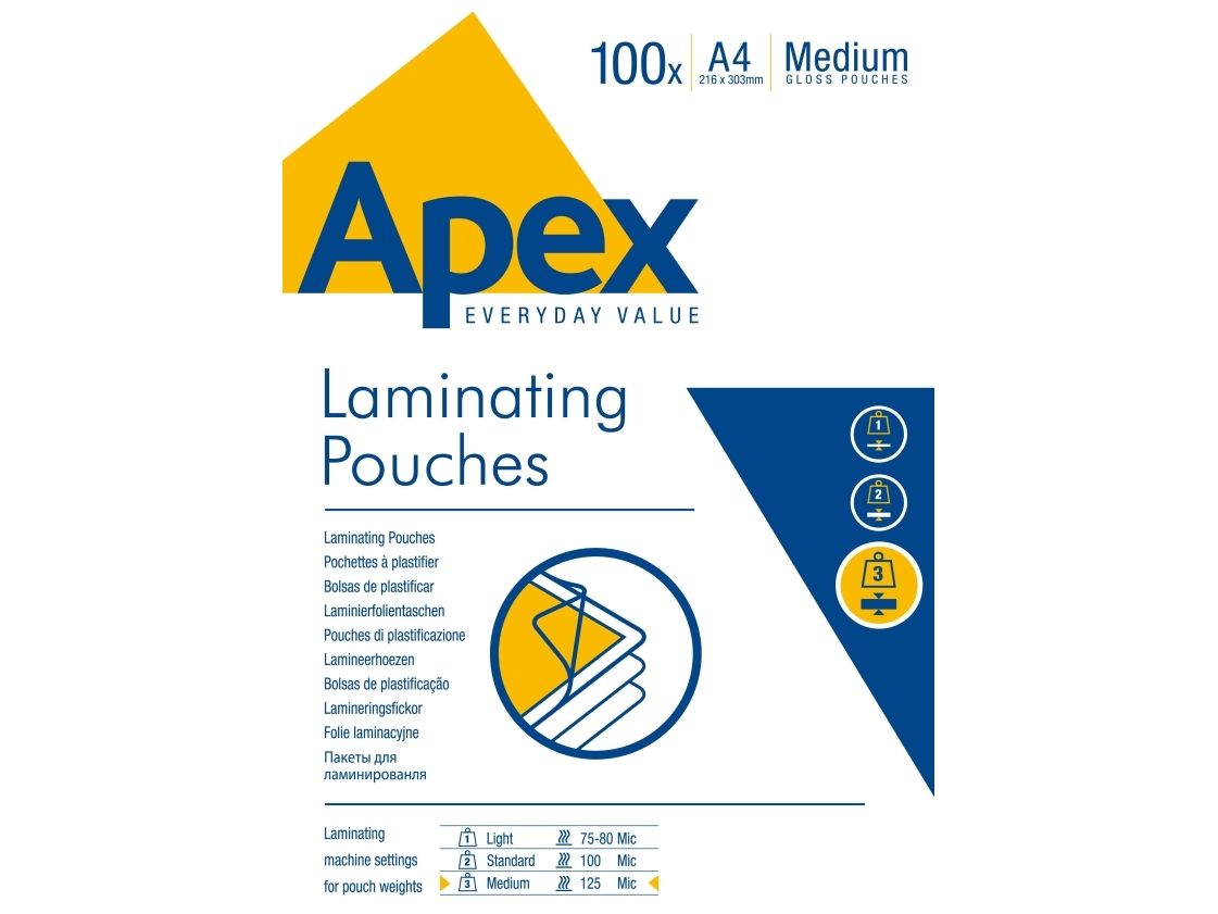 Lamineringslomme Apex A4 125 micron klar - (100 stk.)