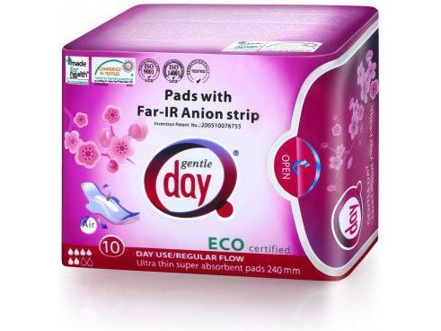 GENTLE DAY_Pads Med Far-IR Anion Strip sanitetsbind for dagen med øko anion stripe 10 stk.