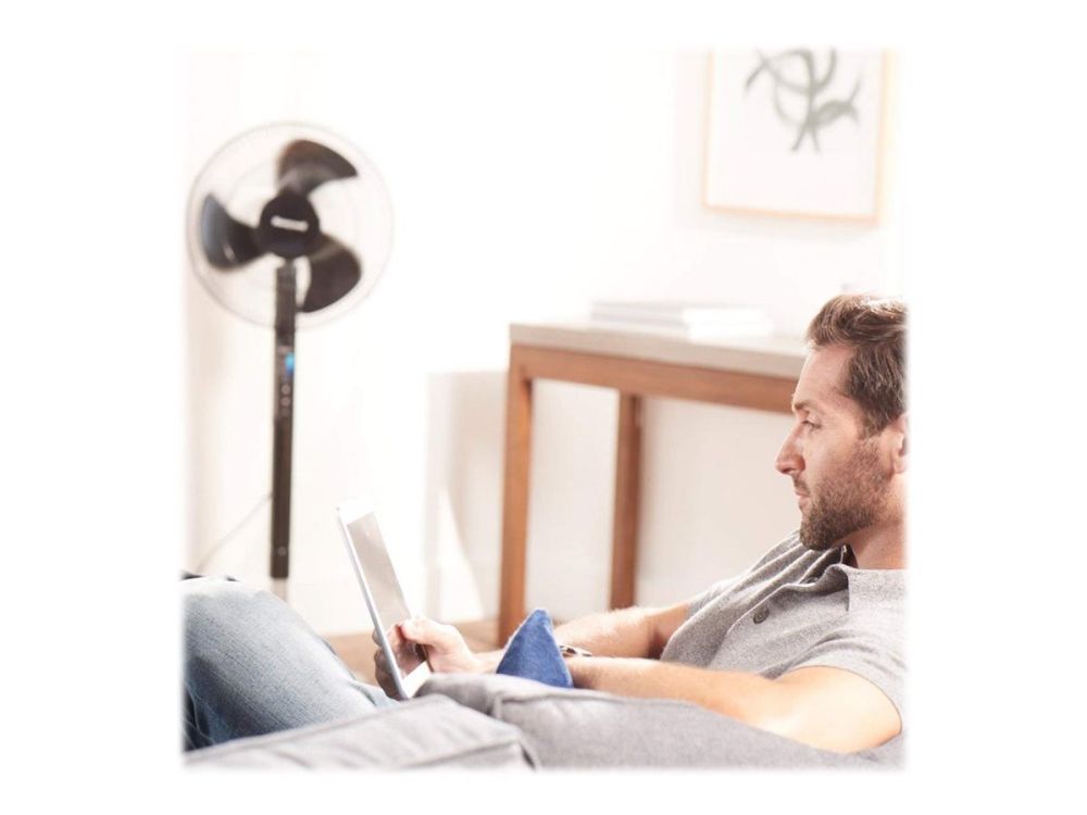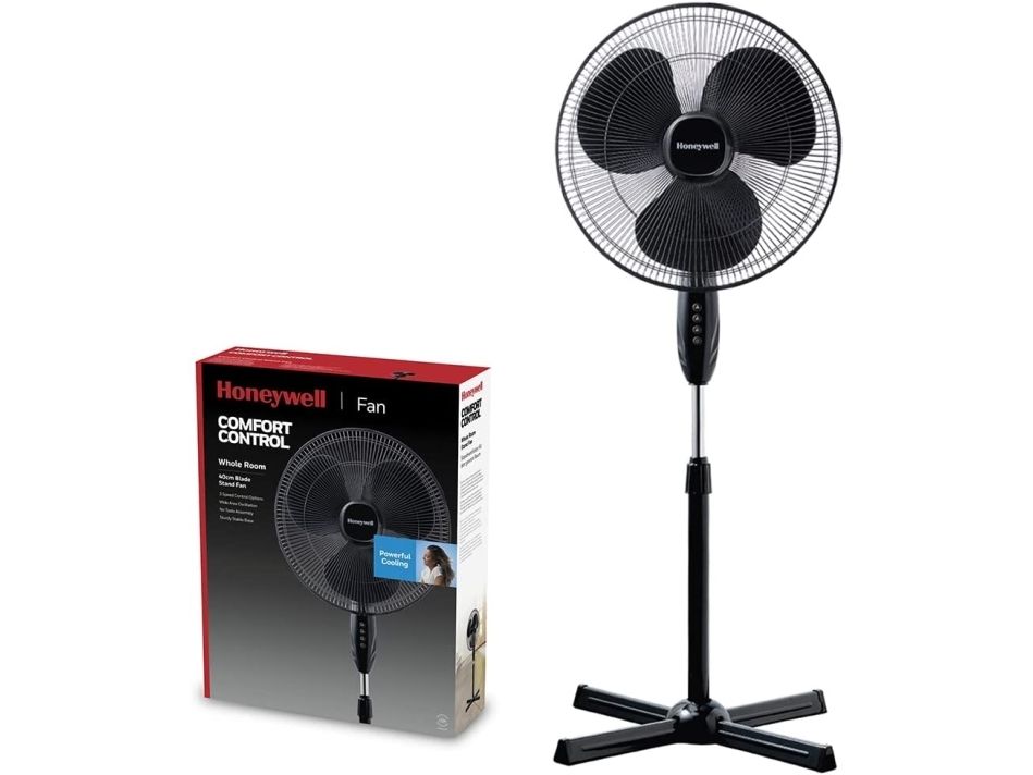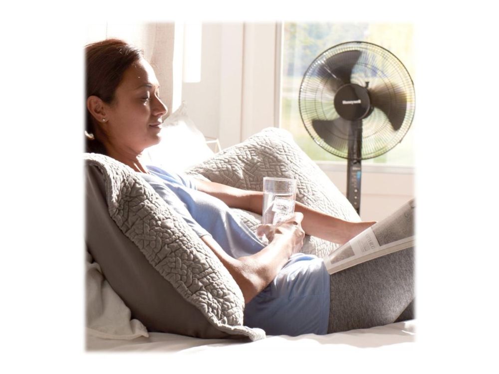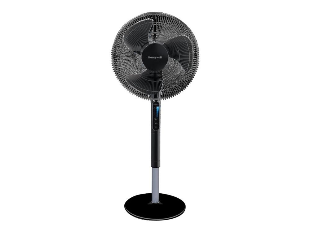 The Honeywell QuietSet 16" stand fan with Noise Reduction Technology delivers powerful whole room cleaning with minimal levels of sound. Noise Reduction Technology incorporates an aerodynamic blade and diffusion cone design that provides whole room cooling with an emphasis on more power and less noise. QuietSet controls include five settings that will allow owners to manually input their sound and cooling options. Auto dimming controls are easily accessible and offer a minimally evasive lighting experience for creating a comfortable and relaxing setting. The addition of an auto shut-off timer adds even more versatility to a stand fan that offers a surplus of features.
