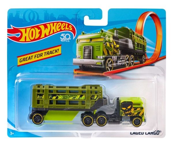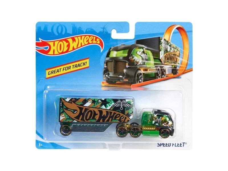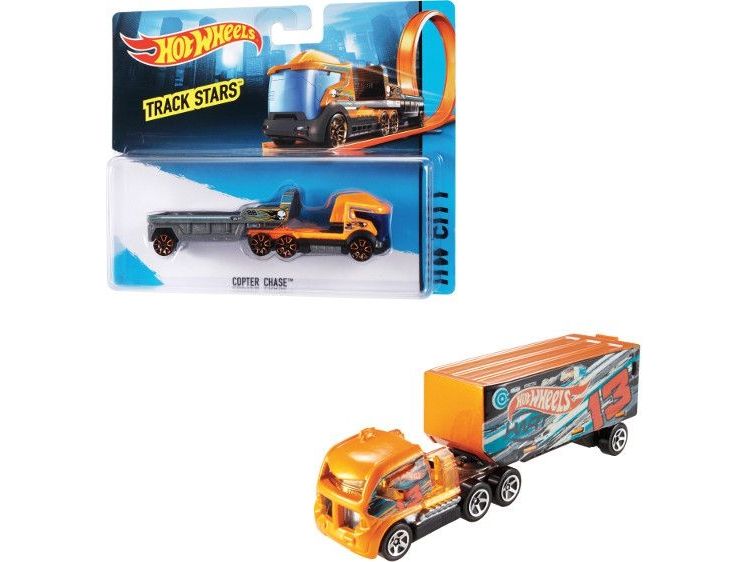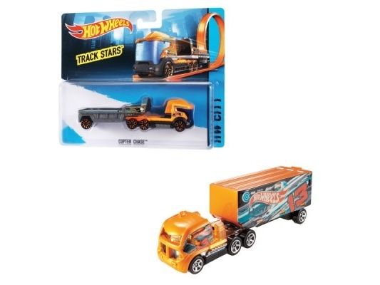 Hot Wheels Track Stars er klare til å kappkjøre! Disse formstøpte bilene er designet for å brukes med Hot Wheels-baner (selges separat) og kan rulle nedover banen i full fart, kjøre gjennom looper og mer! Barna vil få lyst til å samle hele kolleksjonen og kombinere dem på nye måter for å skape den ultimate bilparken, ettersom førerhuset og tilhengeren kan brukes med andre lastebiler i sortimentet! De har flotte farger med semitrailerdetaljer og er klare til å legge ut på den åpne landeveien! Selges hver for seg så langt lageret rekker. Farger og dekor kan variere.