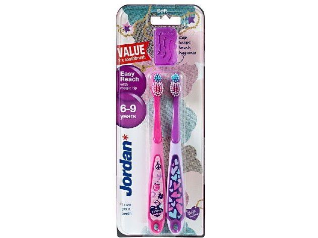 Jordan DUO Easy Reach tannbørste for barn (6-9 år) myk, 1 pakke-2 stk.