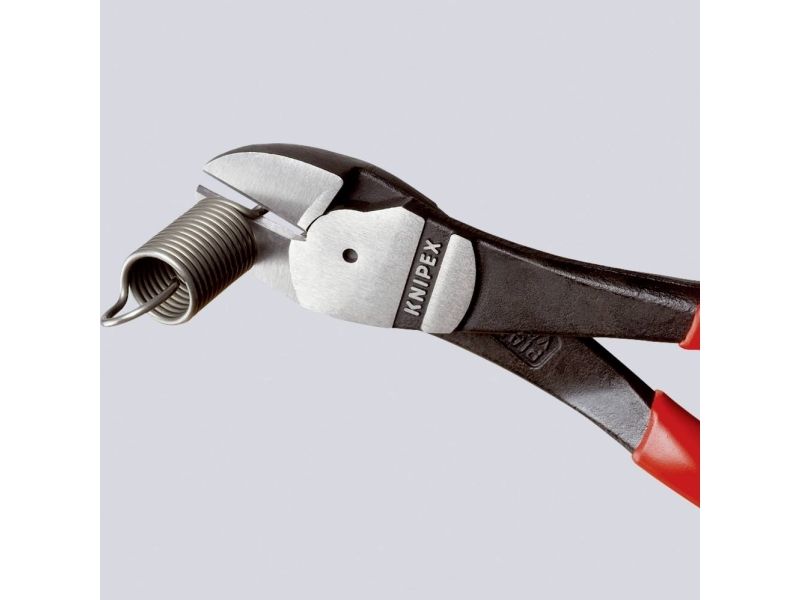 Allround høj ydeevne: optimal kombination af skærekraft, holdbarhed og ergonomi. Skærer mærkbart lettere end konventionelle diagonalskærere af samme størrelse takket være kraftleddet. Optimeret: ca. 20 % kraftbesparelse i forhold til den tidligere model. Til hårdeste, vedvarende belastning. Muliggør mere præcist arbejde takket være håndtagsmuffer tættere på leddet. Raffineret skaftform giver et bedre greb. Præcisionsskær yderligere induktionshærdet (skærets hårdhed ca. 64 HRC), til alle typer tråd, inklusive pianotråd.