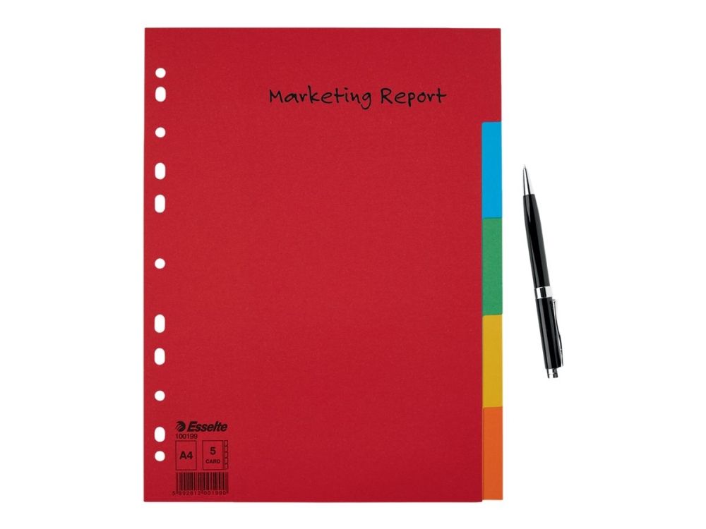 Esselte - Inndeler - 5 deler - for A4 (210 x 297 mm) - med fliker - assorterte farger