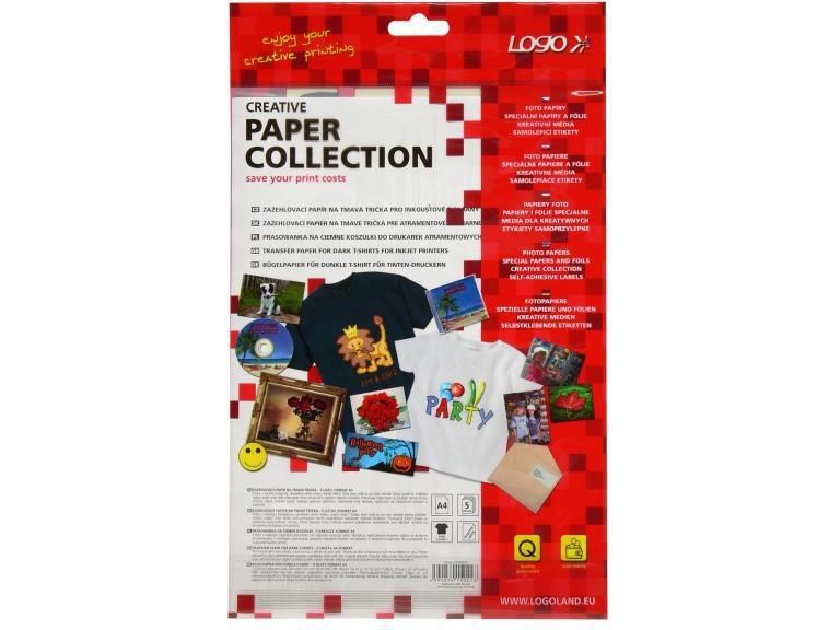 Logo-trykksmønster/transferpapir, papir til mørke t-skjorter, hvit, A4, for blekkskrivere, L (15021)