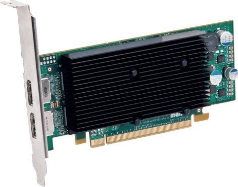 The Matrox M9128 LP PCIe x16 Dualhead graphics card renders pristine image quality on up to two DisplayPort monitors at resolutions up to 2560 x 1600 per output. With 1 GB of memory and advanced desktop management features, the M9128 LP PCIe x16 card supports both independent and stretched desktop modes and is the economical choice to drive business, industrial, and government applications with extraordinary performance. Its low-profile form factor makes it easy to integrate into a wide variety of systems, it offers optimal Windows Vista Aero support (WDDM mode), and can be paired with another M-Series card for additional monitor support.