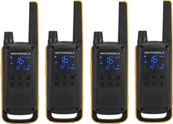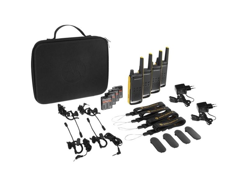 Motorola Talkabout T82 Extreme - Quad Pack - bærbar - toveis radio - PMR - 446 MHz - 16-kanalers - svart, gul (en pakke 4)