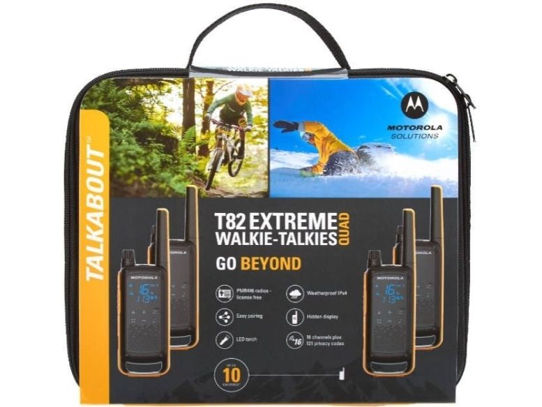 The TALKABOUT T82 Extreme is the rugged travel companion you need on all your wildest adventures. With an IPx4 rating, the T82 Extreme is weatherproof - able to withstand the harshest environments. The hidden display makes calling easier and comes alive when you need it. The easy pairing button makes setup a breeze. A built-in LED torch provides emergency light when needed so you can read your map in the dark. The TALKABOUT T82 Extreme keeps you in touch whether you're on the roughest treks or highest peaks.