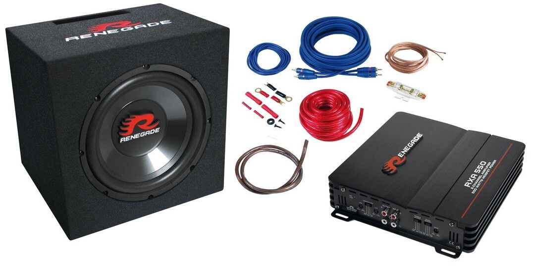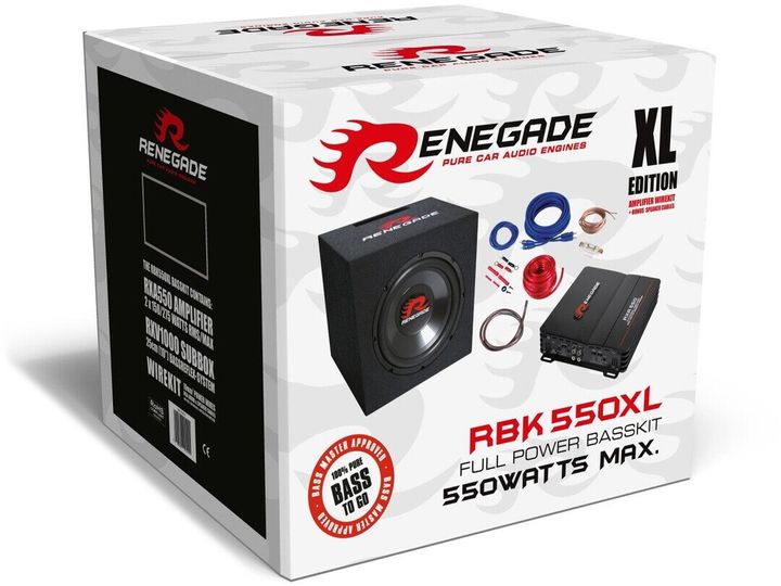 Få rik, kraftfull bass i bilen uten problemer. Renegade RBK550XL er et komplett basssett som inkluderer alt du trenger: en 10" subwoofer i en kompakt boks, en effektiv 2-kanals forsterker og et komplett installasjonssett.